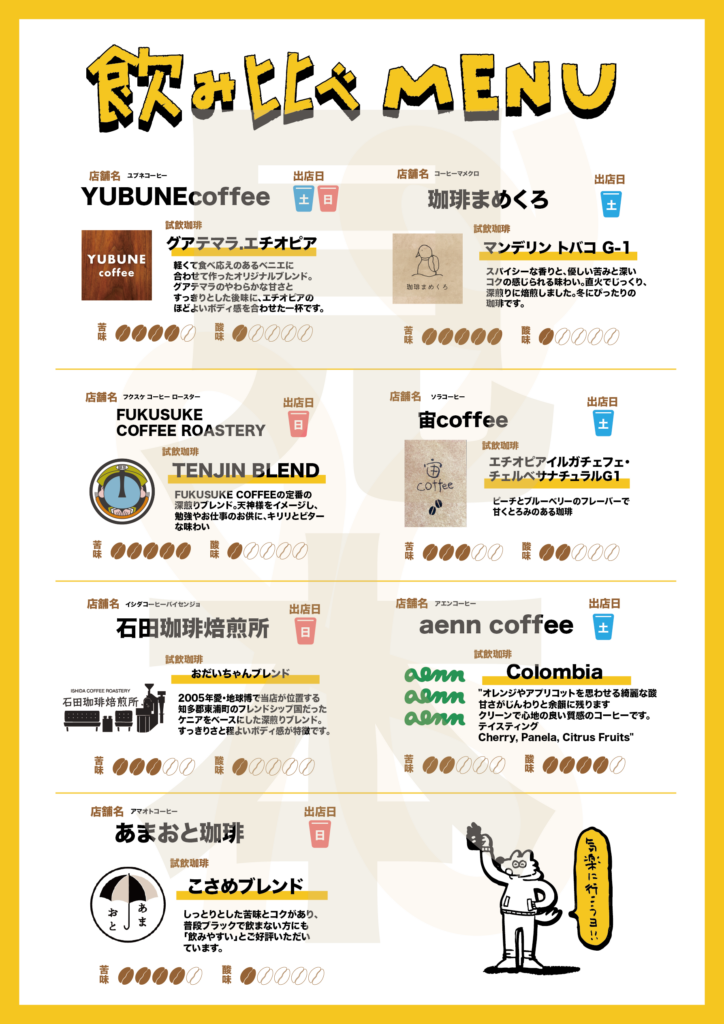 出店者にはデミカップ(50ml以上)の飲み比べ用珈琲をご用意いただきます。